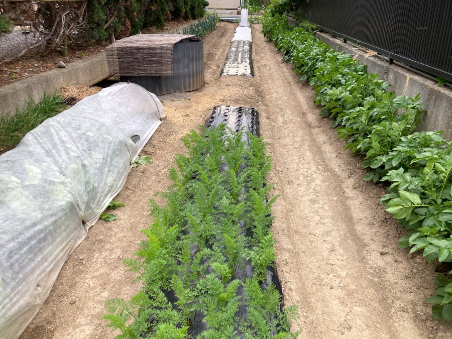 B菜園ではジャガイモ・ニンジン・ハクサイ・ダイコン・ネギを作っています。