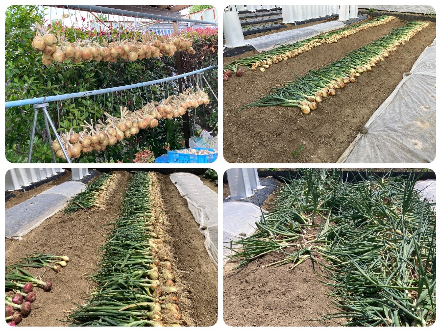 すっかり倒れたので5月22日に収穫して25日に吊り下げました。今までで最速です。