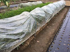 春作と同じ生育期間(約100日)が確保できるように霜が来る前に透明ビニールで覆いをかけます。