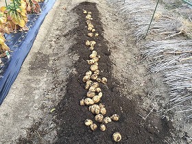 秋作ジャガイモは茎が枯れても収穫しないで土中に置いておくと、冬の間新鮮な新ジャガとして収穫することが出来ます。