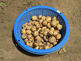 冬から春先にかけて新ジャガが収穫できます。(写真は3月)種イモとして再利用